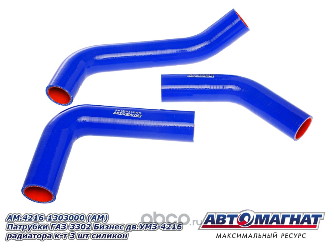 АВТОМАГНАТ AM100016 Патрубки ГАЗ-3302 Бизнес дв.УМЗ-4216 радиатора комплект 3шт. силикон.