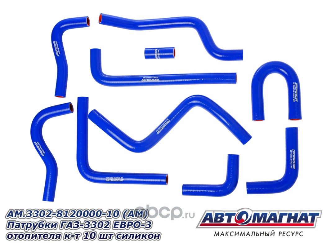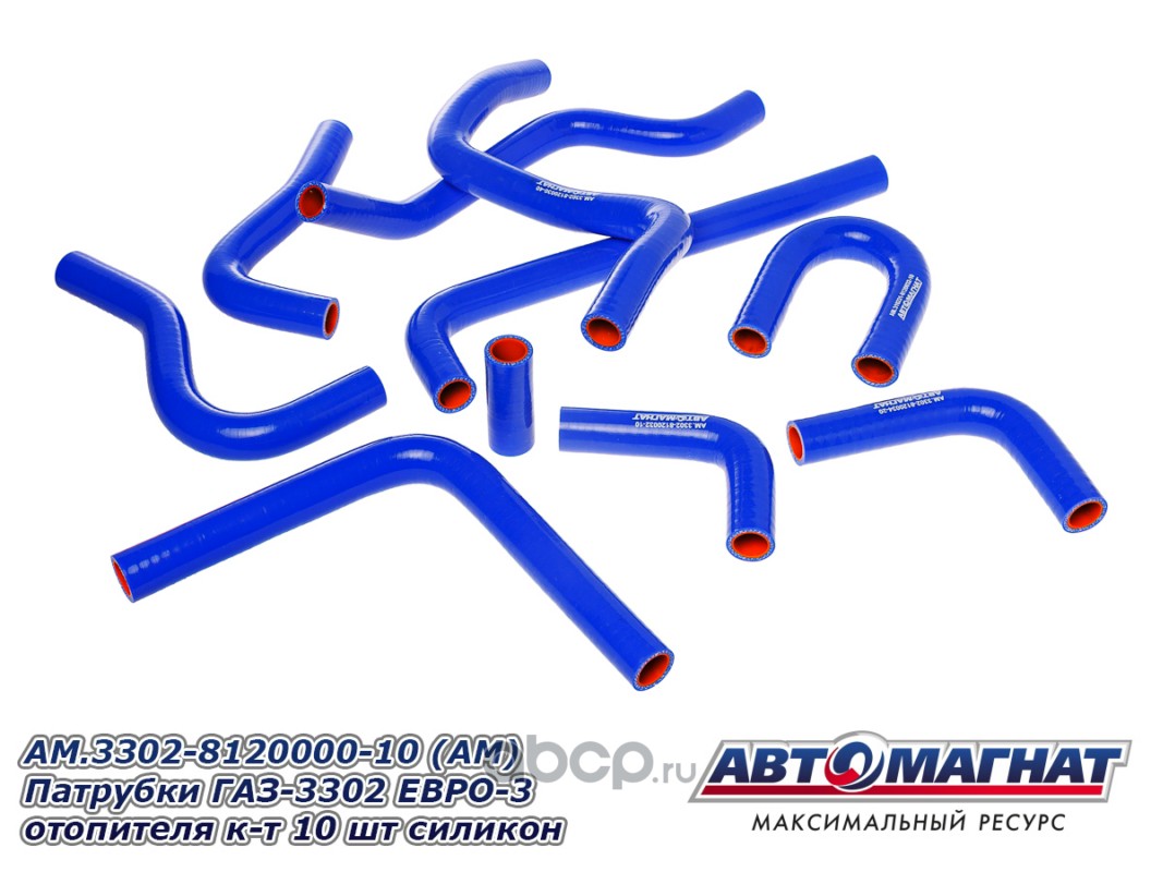 АВТОМАГНАТ AM100029 Патрубки ГАЗ-3302 ЕВРО-3 отопителя комплект 10шт. силикон.