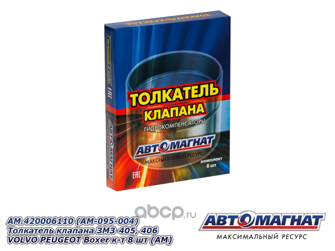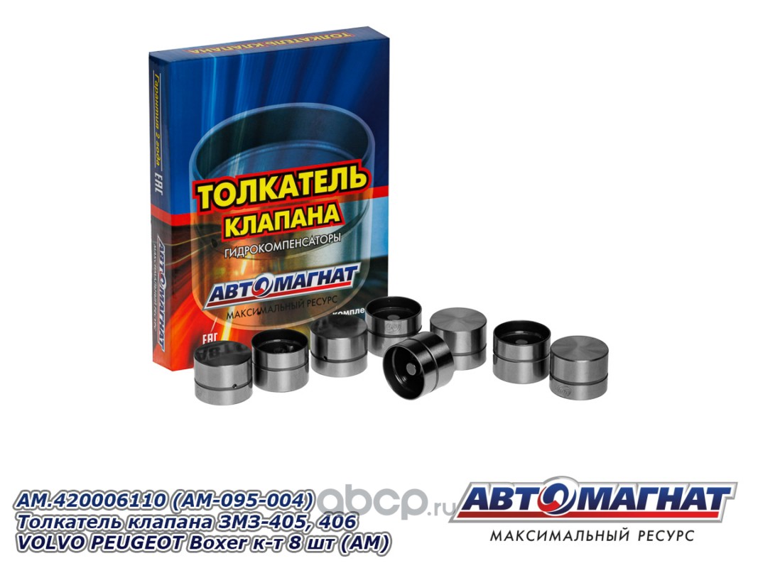 АВТОМАГНАТ AM095004 Толкатель клапана комплект 8шт. в упаковке легкая контсрукция ЗМЗ-405, 406