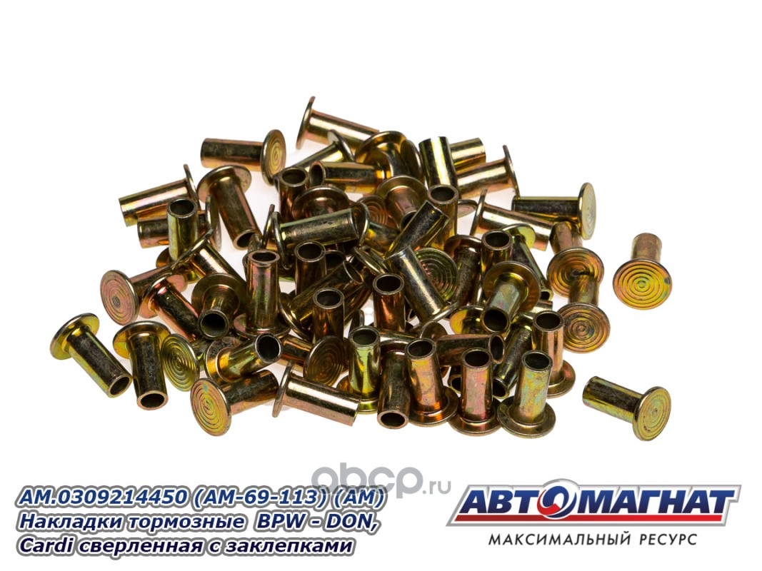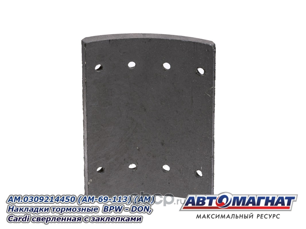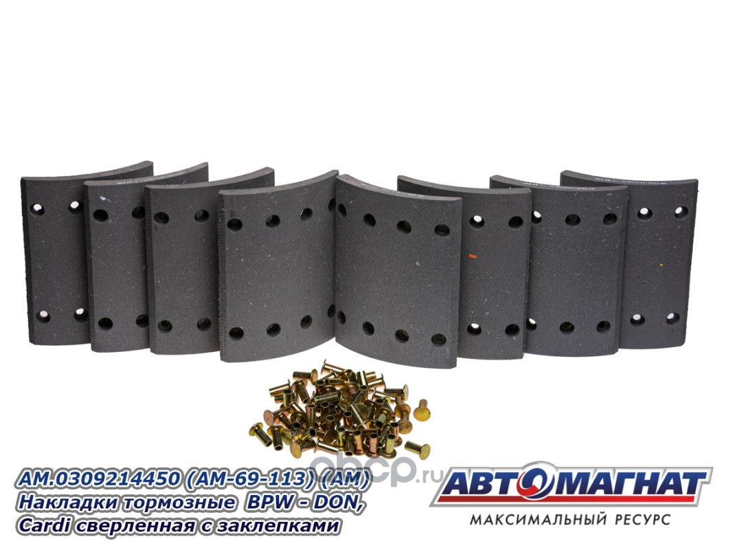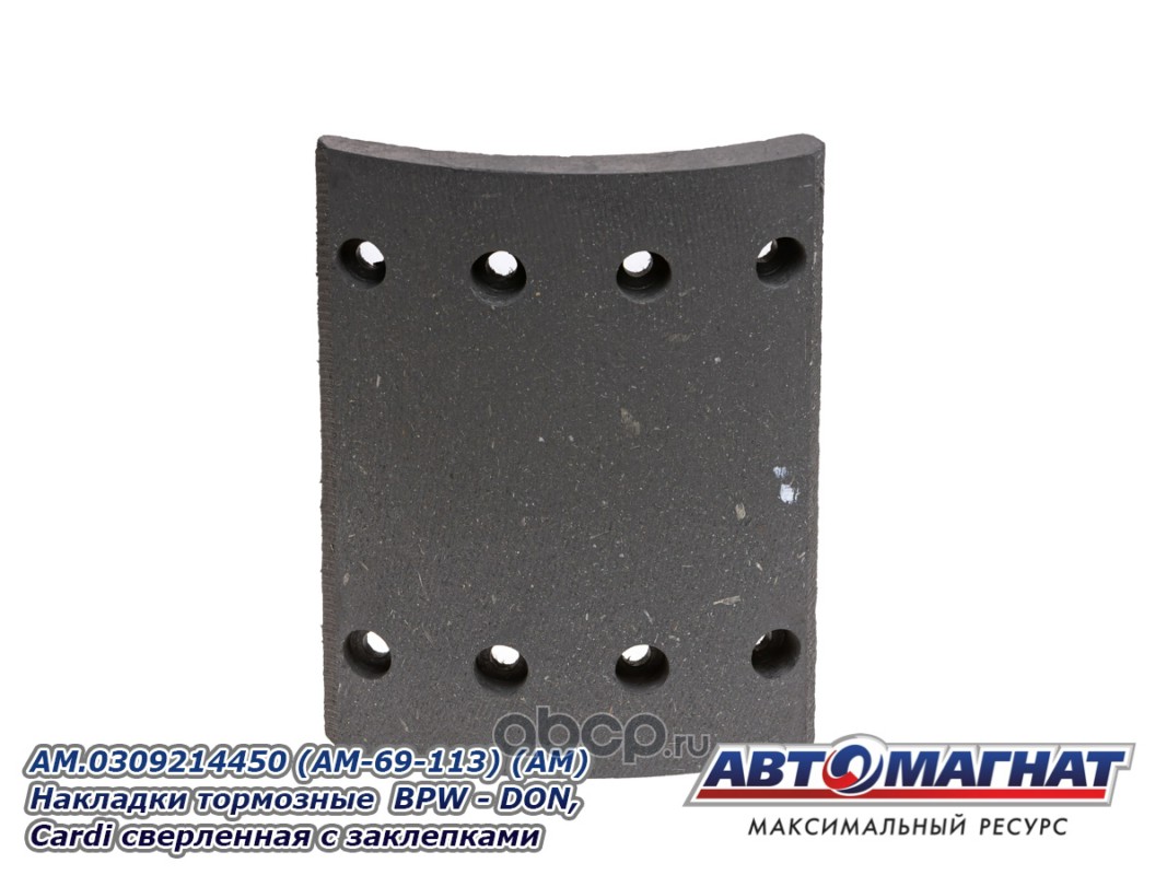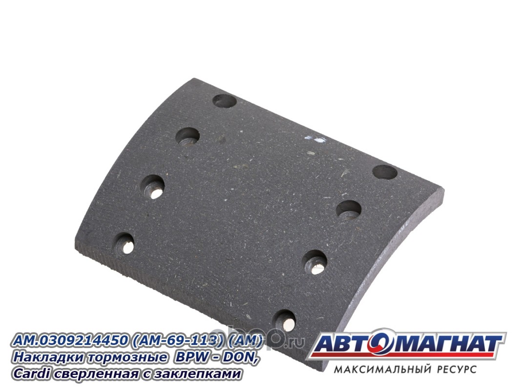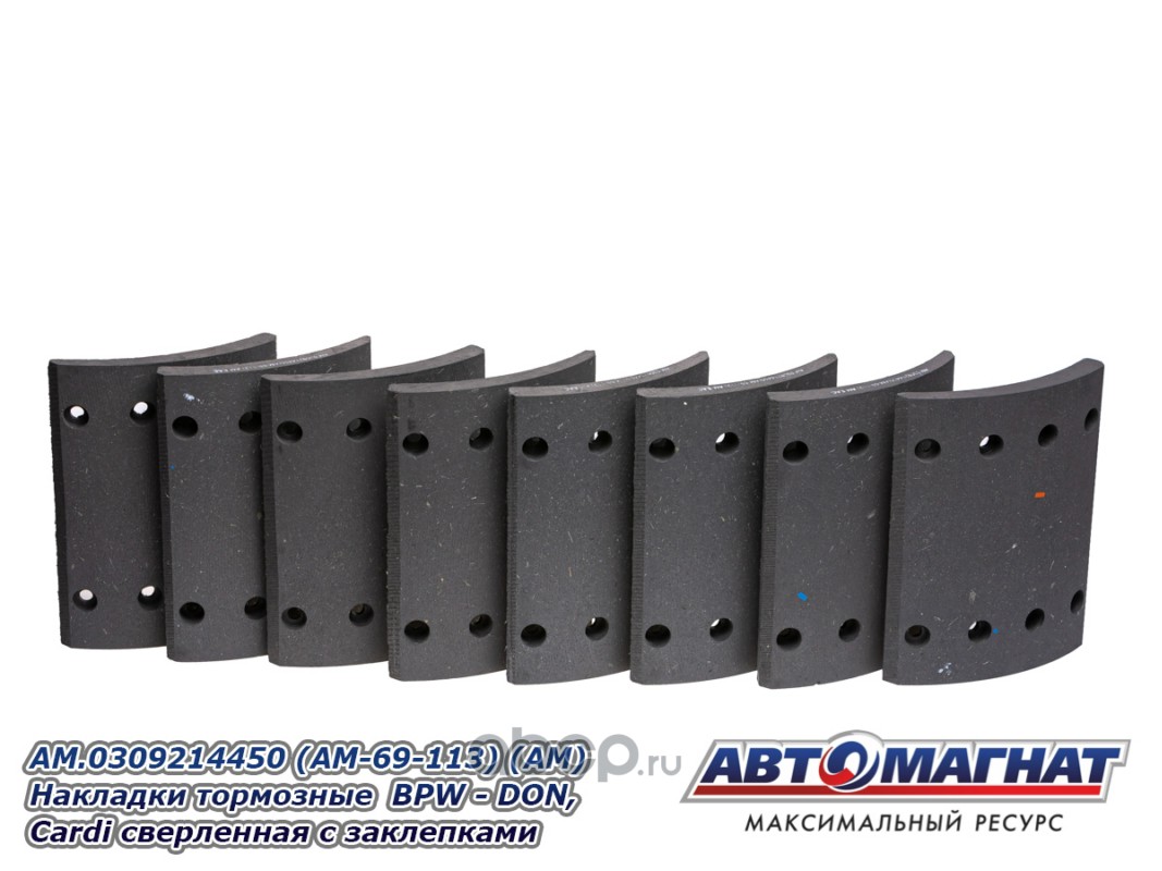 АВТОМАГНАТ AM69113 Накладки тормозные BPW - DON, Cardi (300x200; 17.00 MM) (64 отв.:8x15/93251) сверленная с заклепками (комплект 8шт)