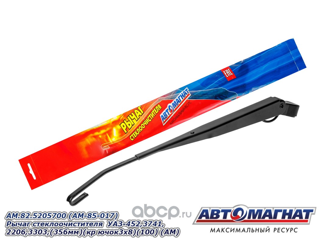 АВТОМАГНАТ AM85017 Рычаг стеклоочистителя УАЗ-452, 3741, 2206, 3303, (356мм) (крючок 3х8) левый