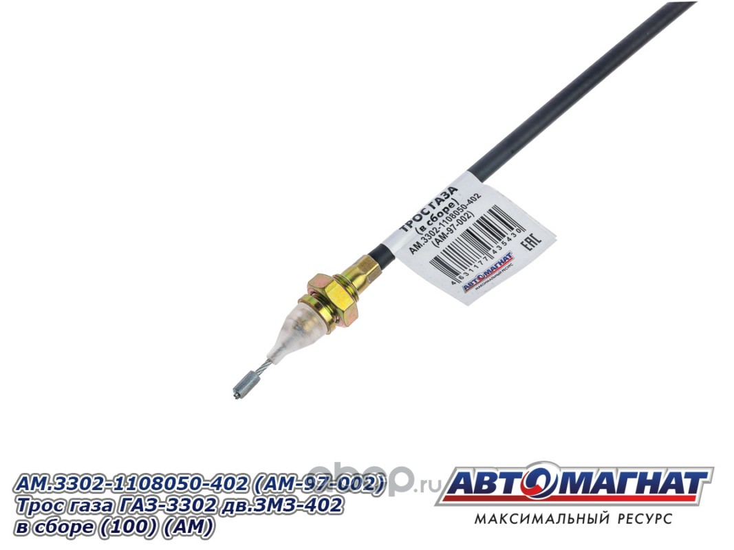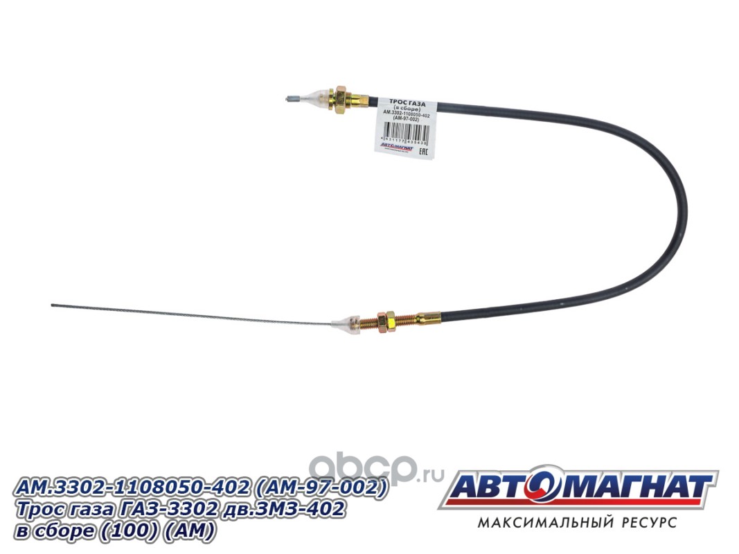 АВТОМАГНАТ AM97002 Трос газа ГАЗ-3302 дв.ЗМЗ-402в сборе (75 см)