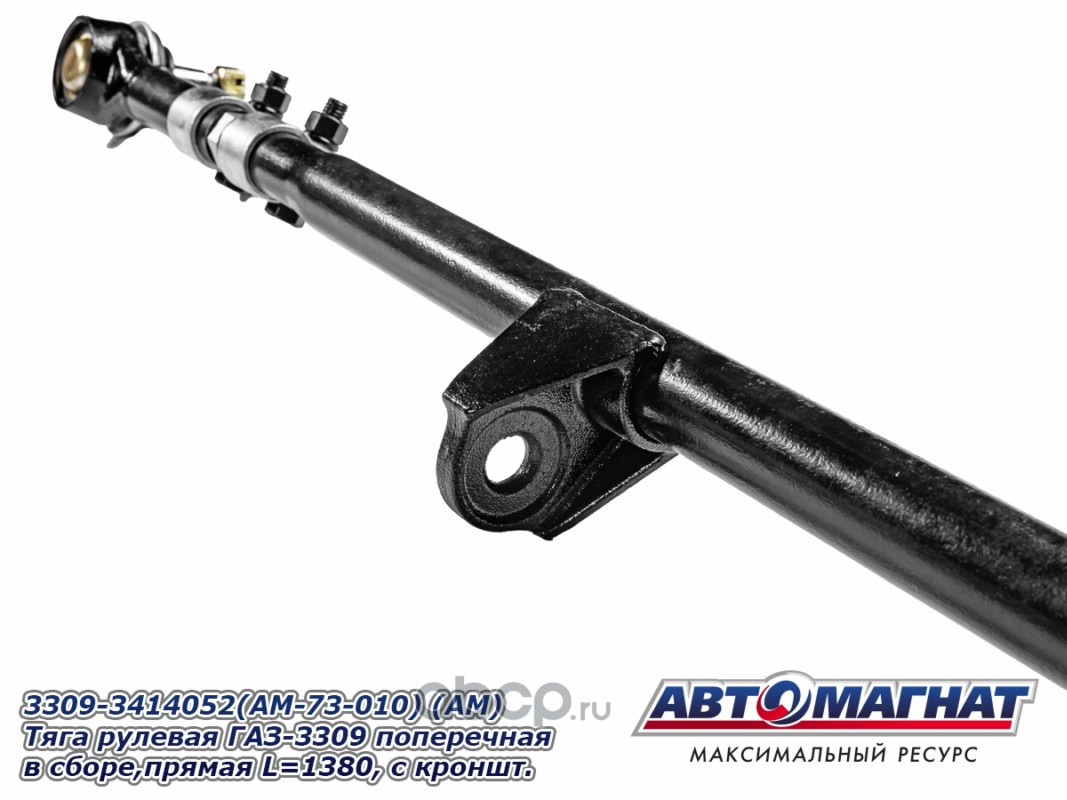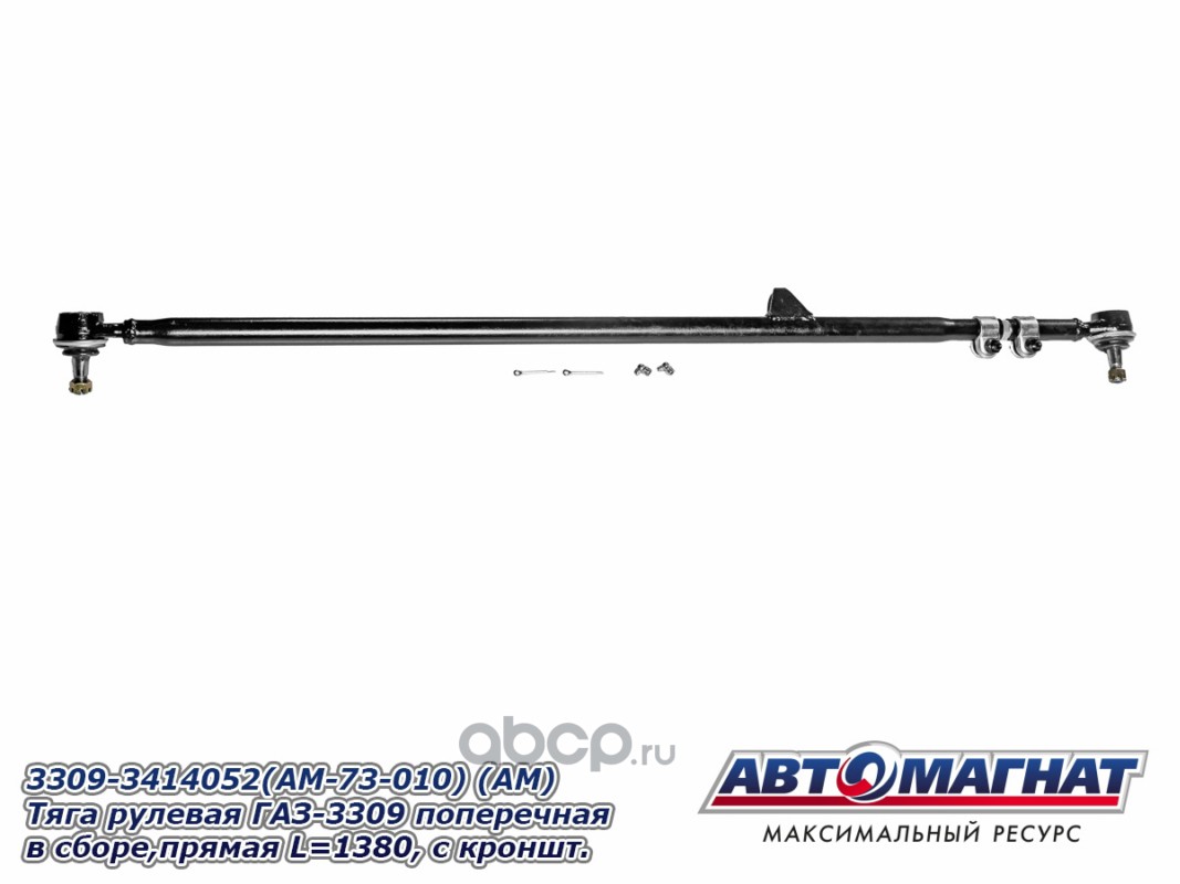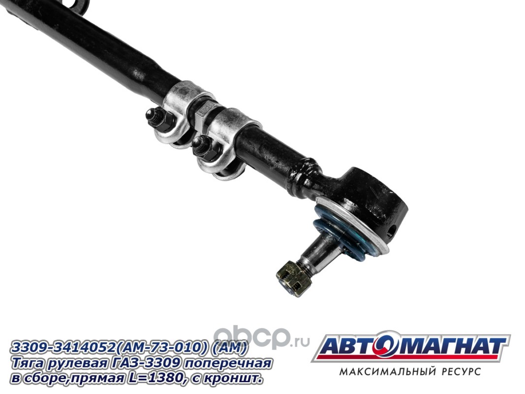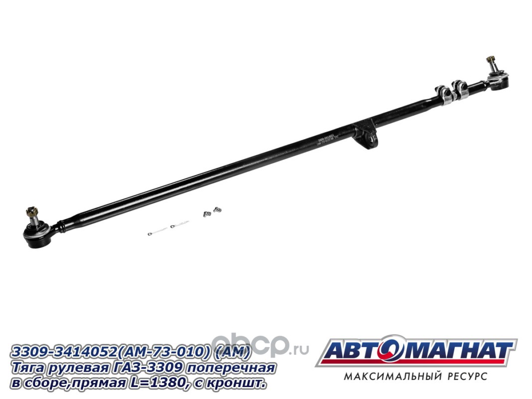 АВТОМАГНАТ AM73010 Тяга рулевая ГАЗ-3309 поперечная в сборе, прямая L=1380, с кронштейном и 2-я хомутами.