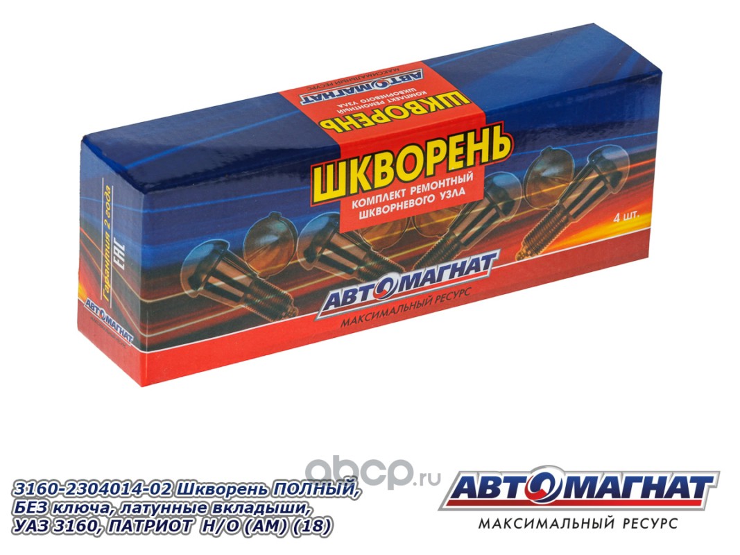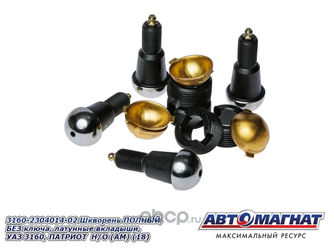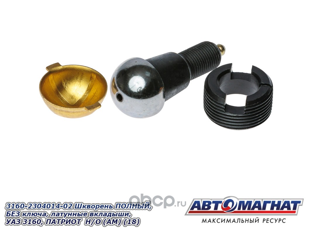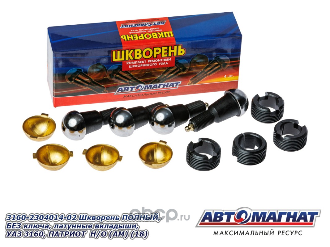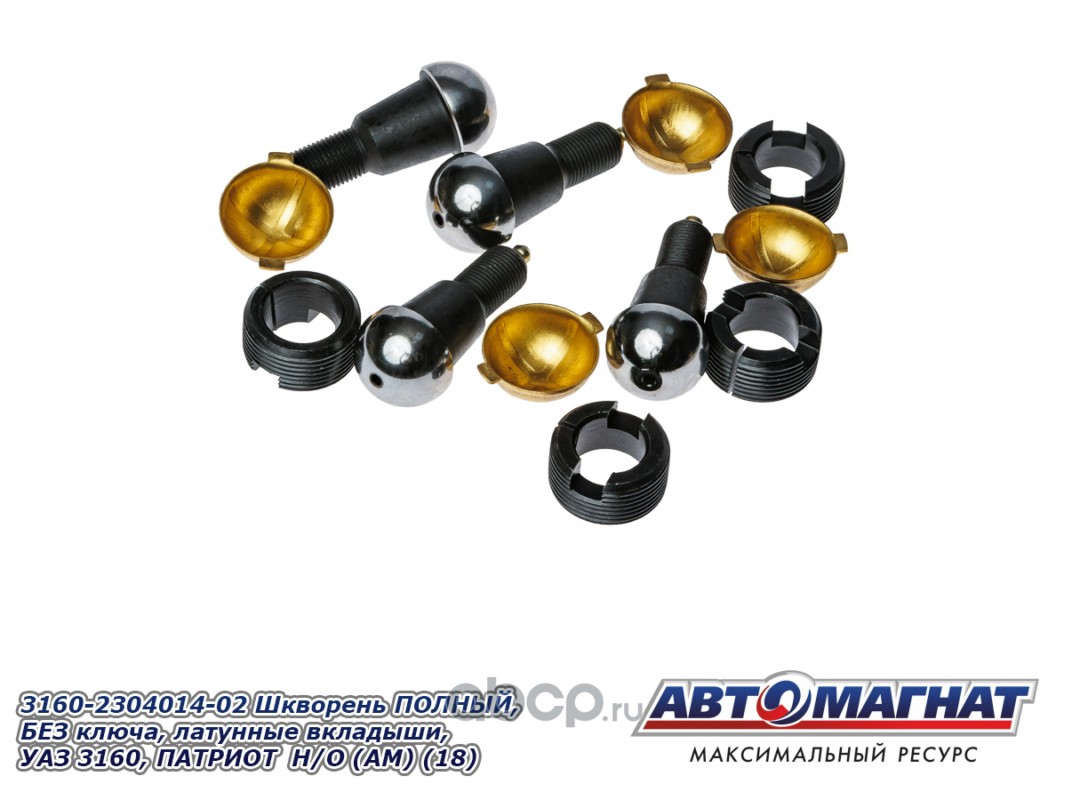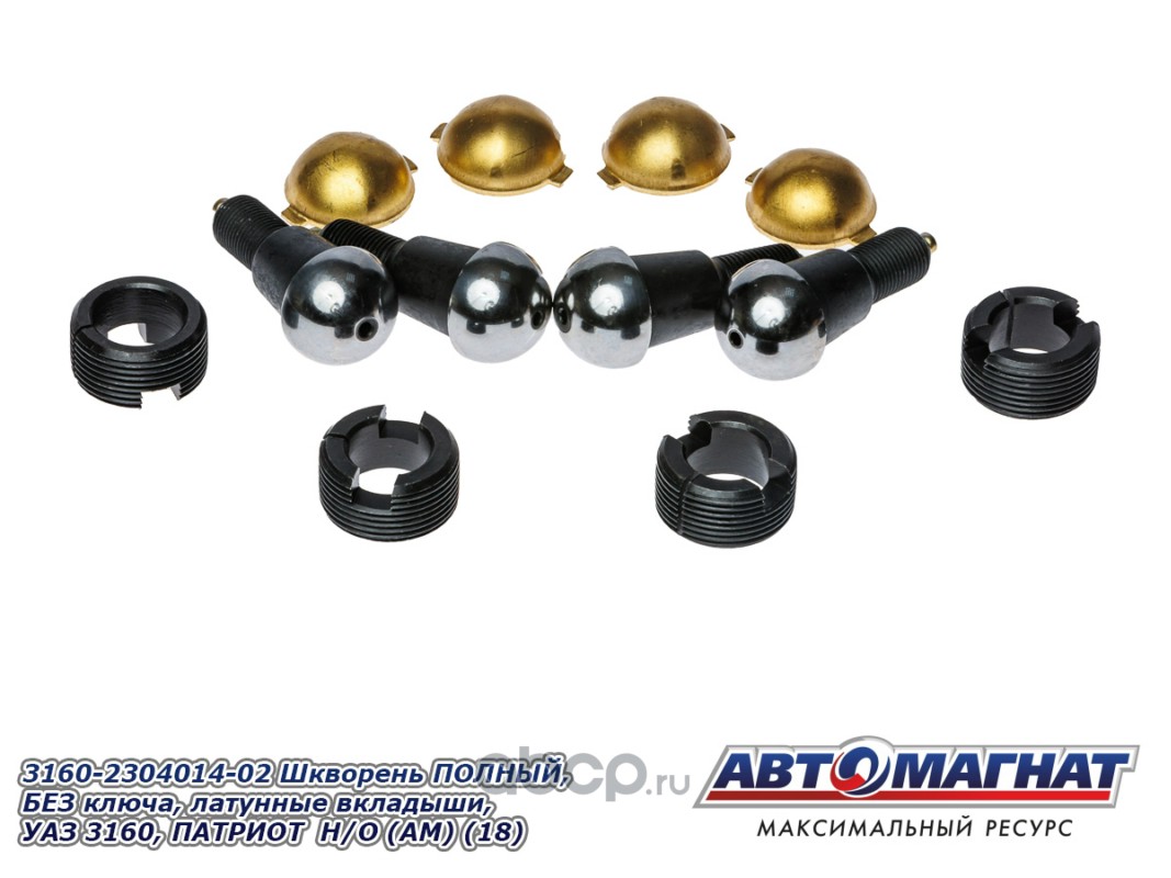 АВТОМАГНАТ AM51009 Шкворень ПОЛНЫЙ, БЕЗ ключа, латунные вкладыши, УАЗ 3160, ПАТРИОТ, ХАНТЕР, 452 комплект 4шт НОВ. ОБР. (Комплект ремонтный шкворневого узла: 4 шкворня, 4 латунных вкладыша, 4 втулки)