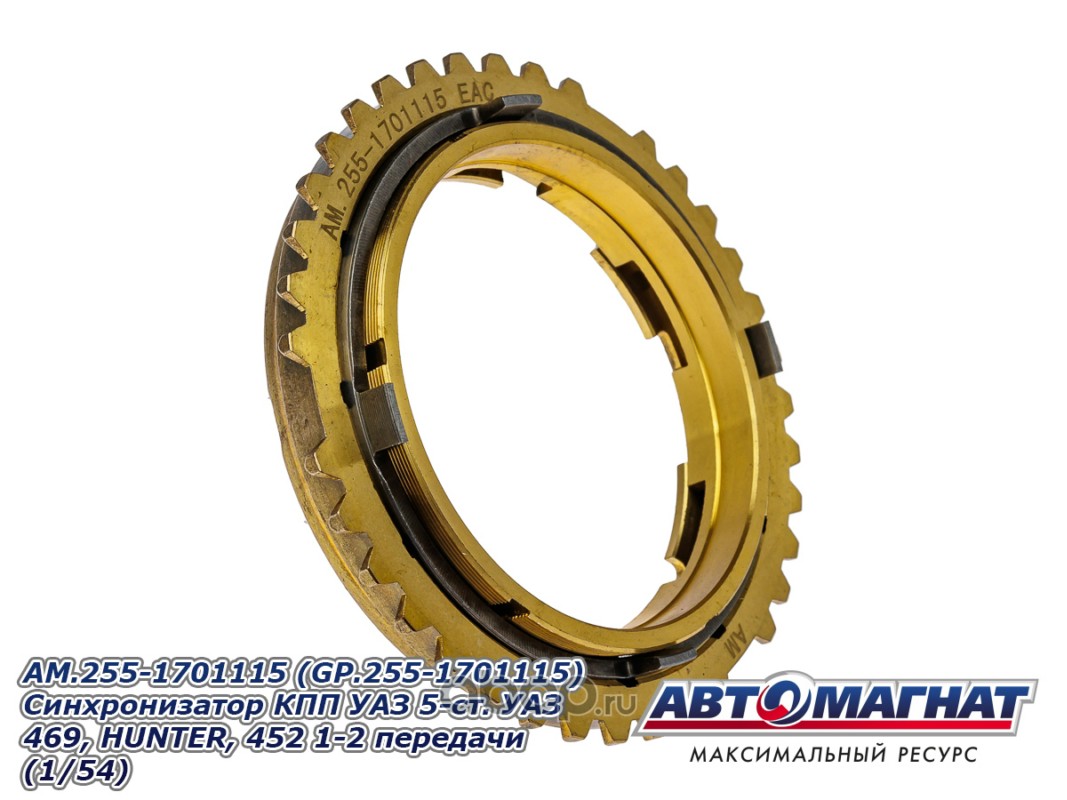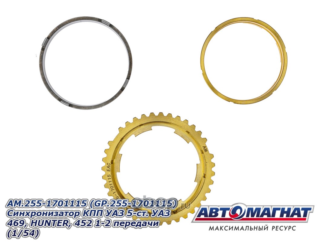 АВТОМАГНАТ AM55016 Синхронизатор КПП 5-ст. УАЗ 469, HUNTER, 452 1-2 передачи (трёхконусный, с 2011г)