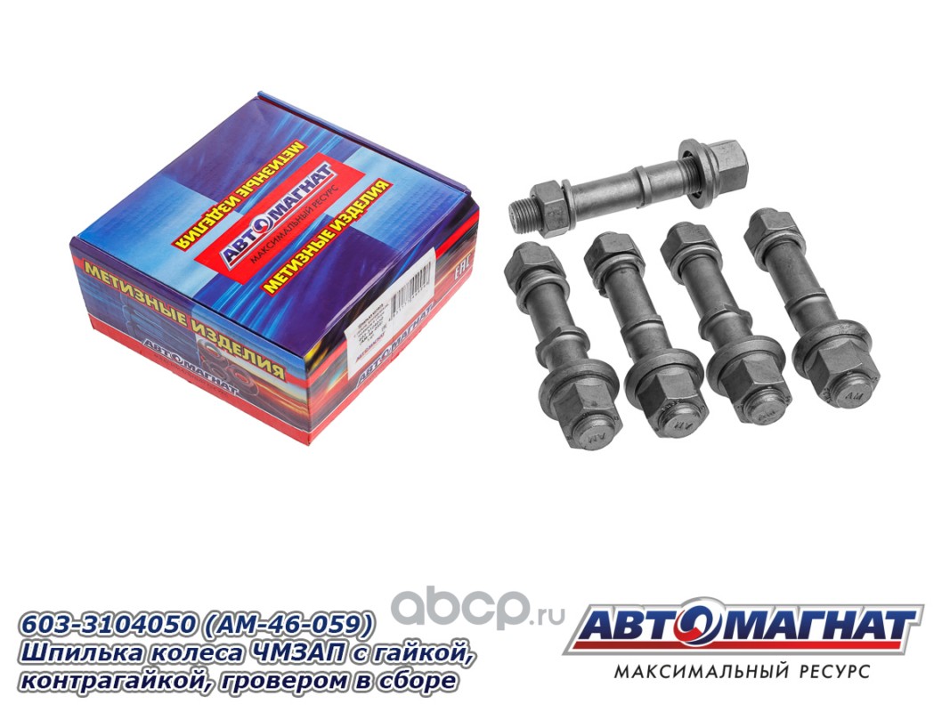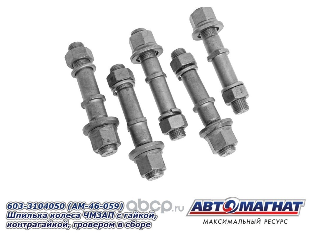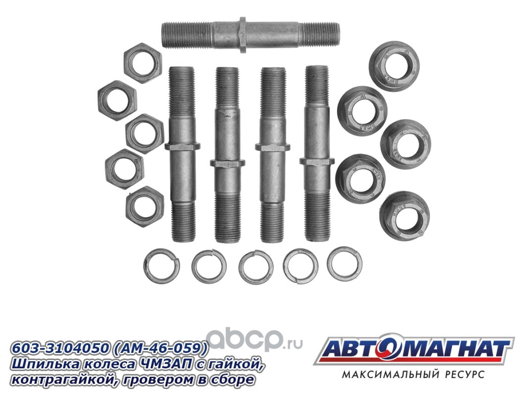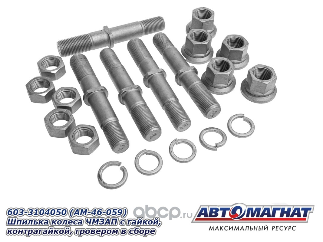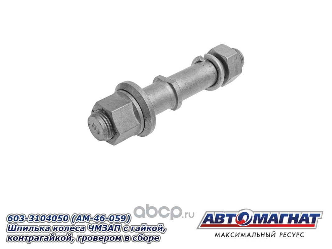 Шпилька колеса ЧМЗАП-9990 с гайкой, контрагайкой, гровером в сборе