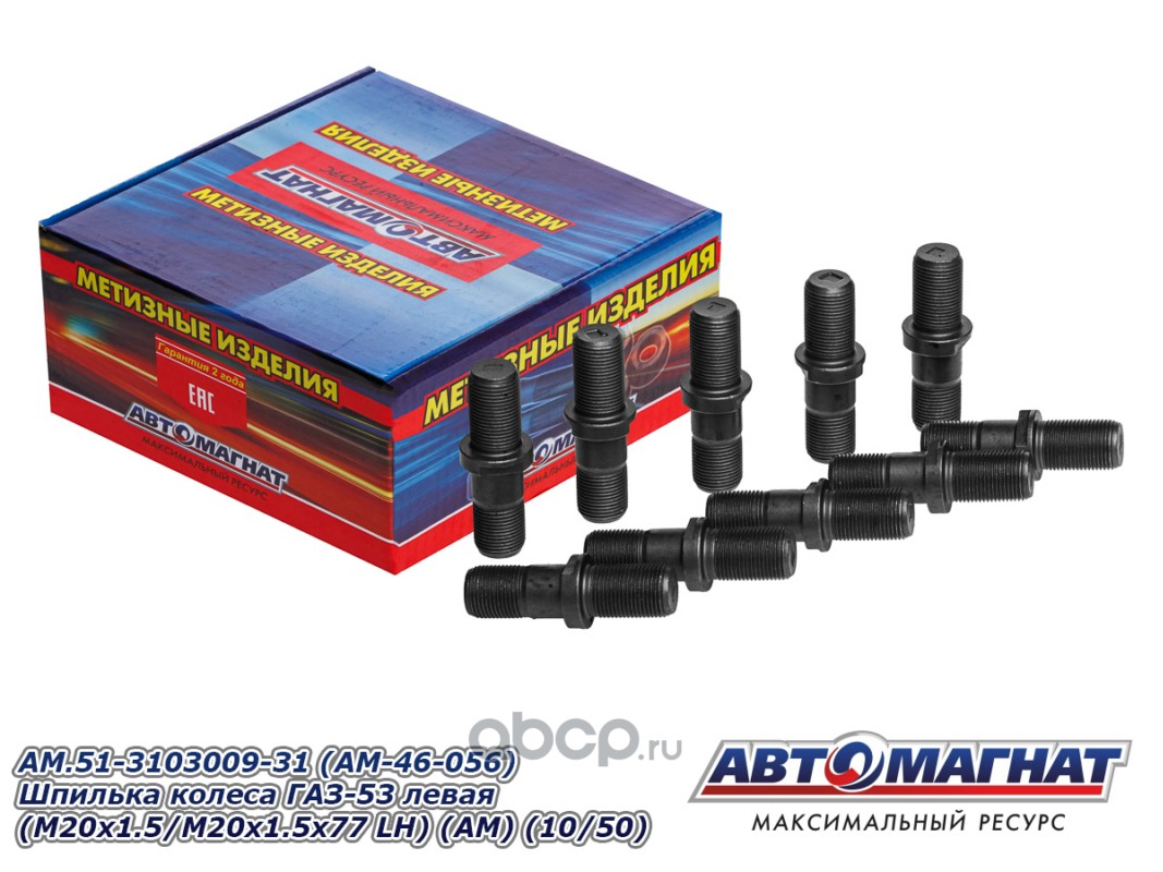 Шпилька колеса ГАЗ-53 левая (М20х1.5/M20x1.5x77 LH)