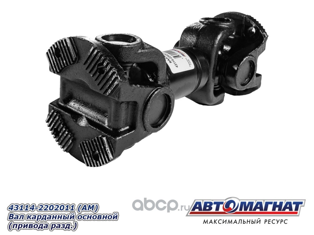 Вал карданный основной (привода раздаточной коробки) КАМАЗ-43114, 43118, 4326, 42111, 4350, 43501, 53228, 53229, УРАЛ-4320, 43206 (ФЛАНЕЦ С ТОРЦОВЫМИ ШЛИЦАМИ)