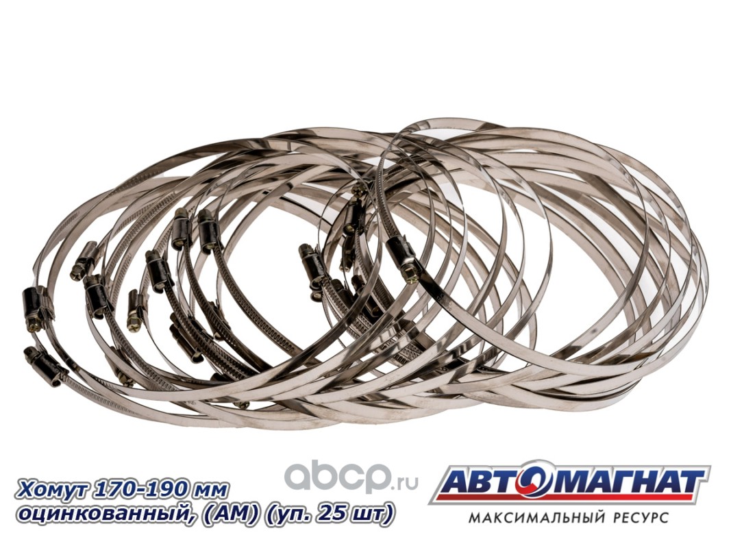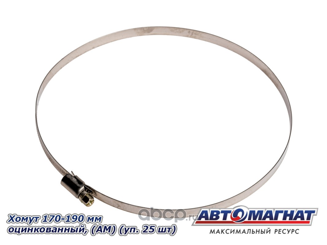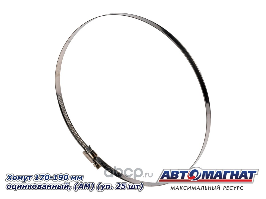 Хомут ленточный 170-190 мм, ширина 9 мм., W1 -Оцинкованный металл, болтовое крепление, "Автомагнат", (уп.25 шт)