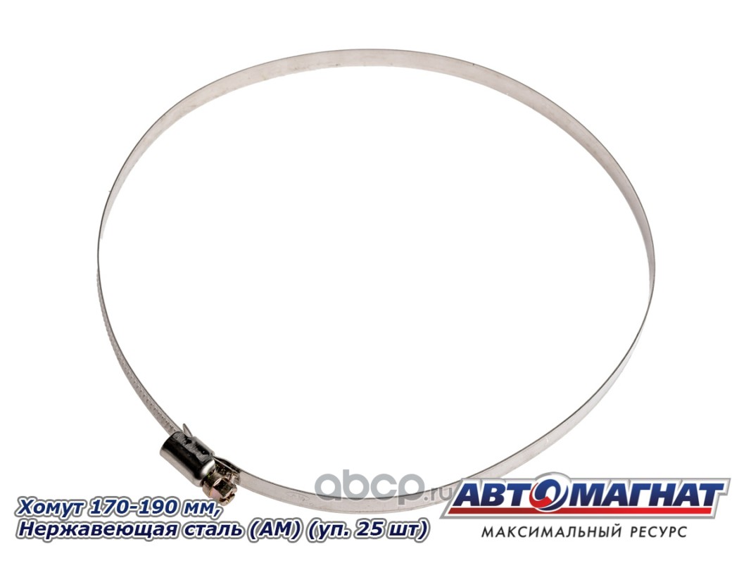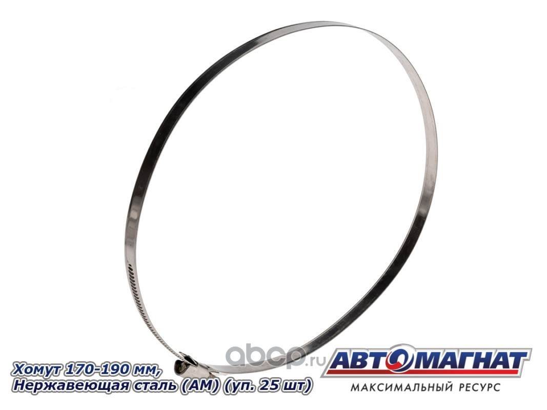 Хомут ленточный 170-190 мм, ширина 9 мм, W2-Нержавеющая сталь, болтовое крепление "Автомагнат", (уп.25 шт)