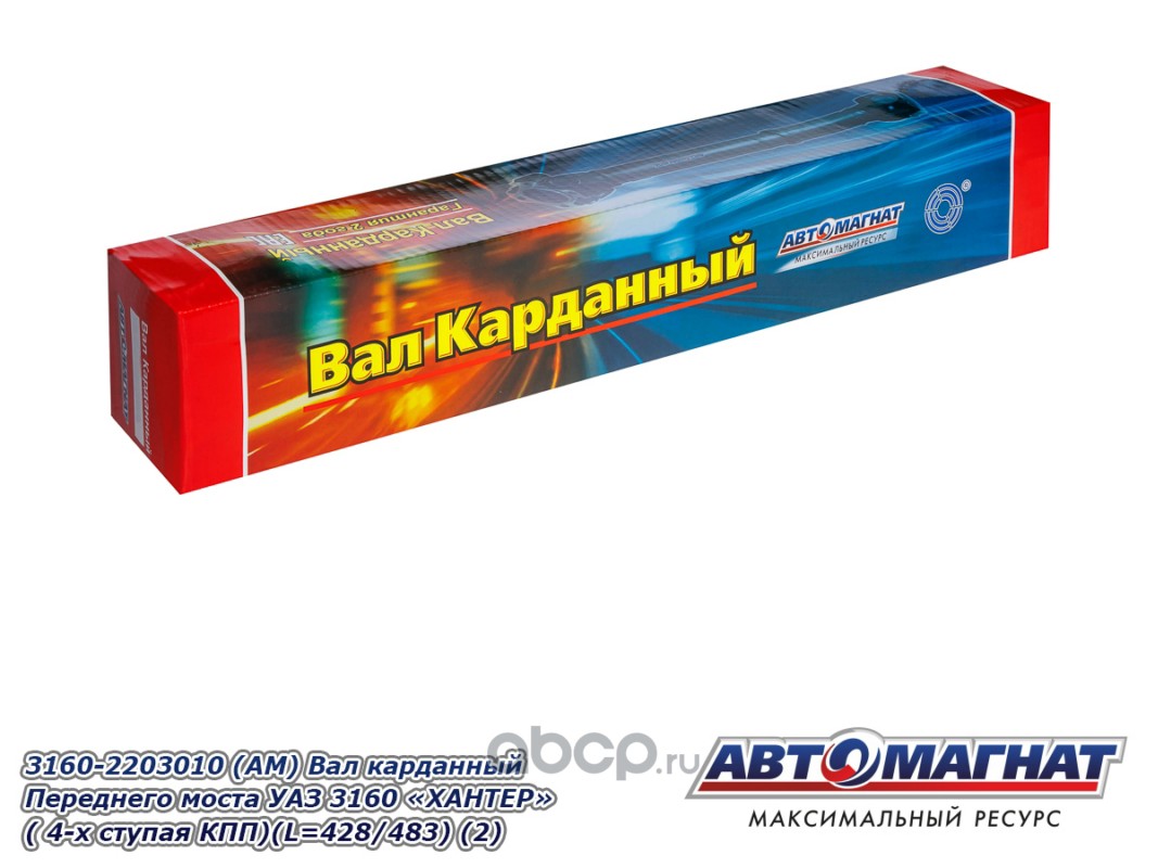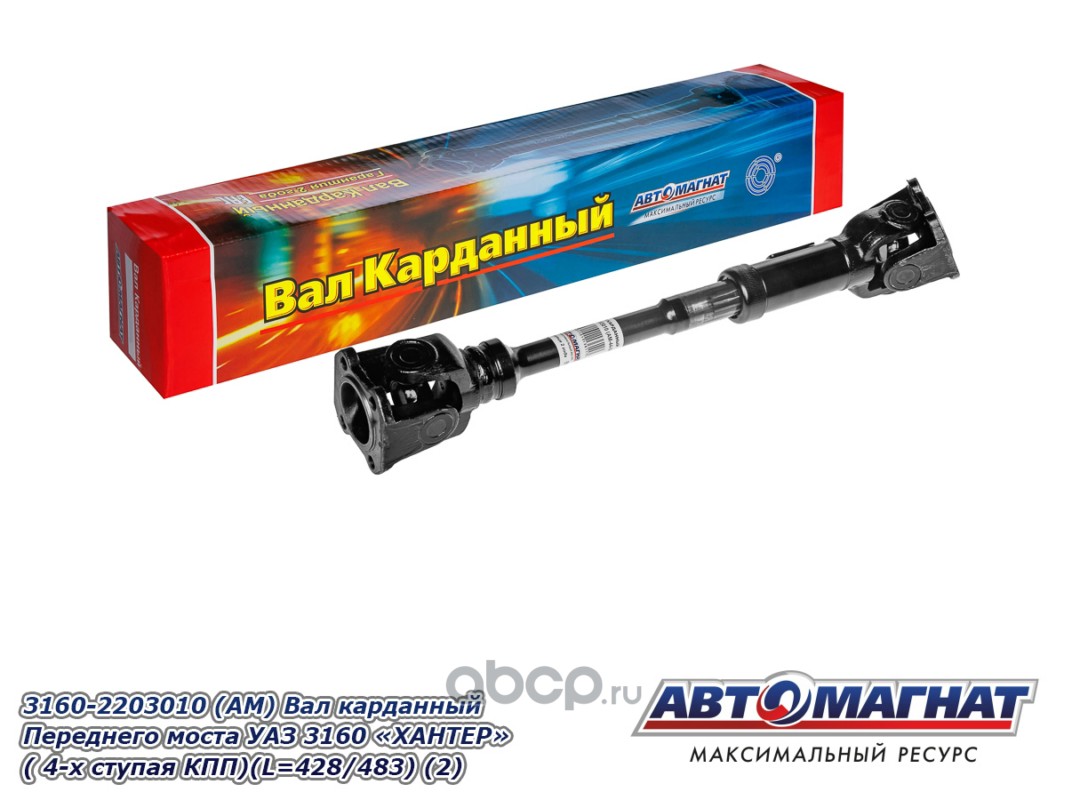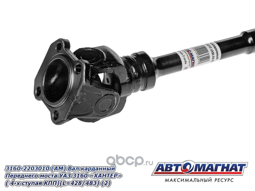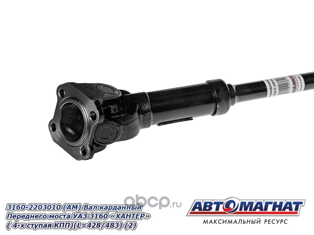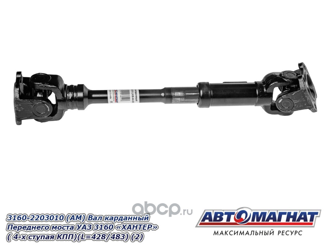 Вал карданный Переднего моста УАЗ 3160 "ХАНТЕР" ( 4-х ступая КПП)(L=428мм/483 мм/Lmin габаритная 518мм)