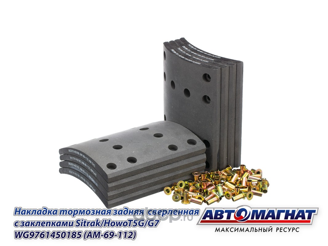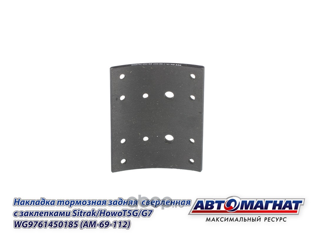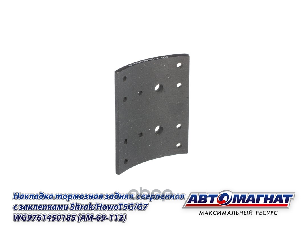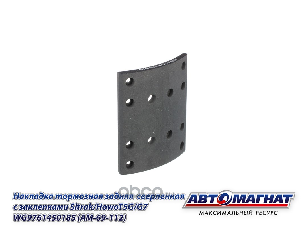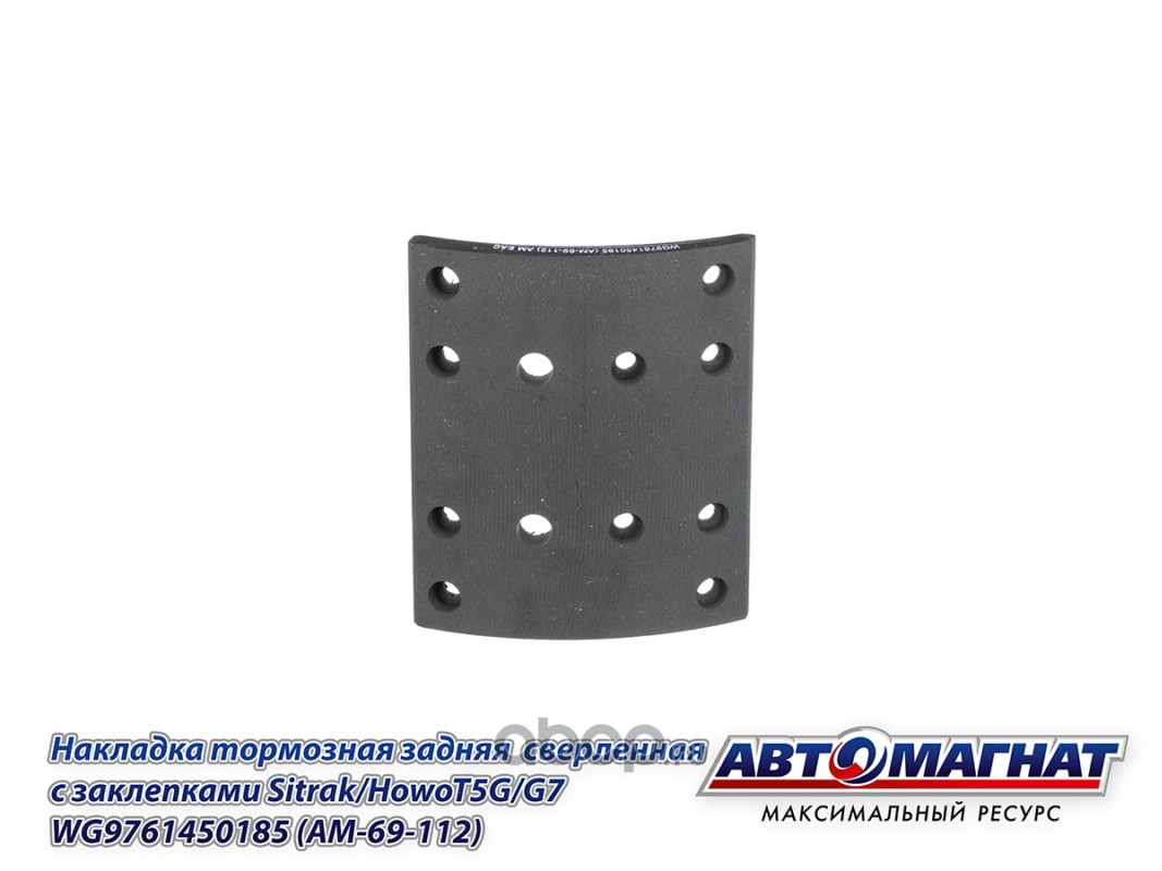 Накладка тормозная задняя сверленная с заклепками (12 отв.) Sitrak/HowoT5G/G7 , (TX 8X4, TX 6X4) (410*220, 12 отв.)