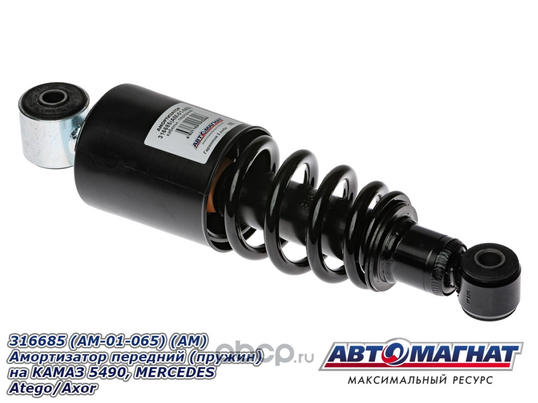 Амортизатор (Газо-масл) Передней подвески автомобиля ГАЗон NEXT, ПАЗ Вектор NEXT (метал. Кожух, с втулками) Dp=51мм (диаметр трубы), Dh=17,5мм (диаметр вн. втулки) (445мм/755мм)