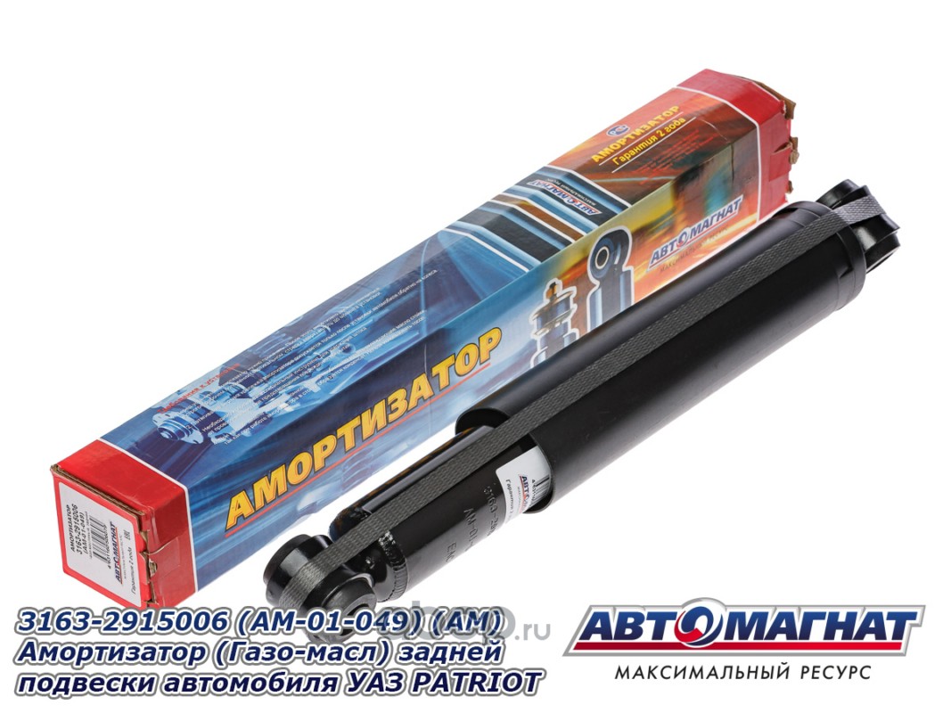 Амортизатор (Газо-масл) задней подвески автомобиля УАЗ PATRIOT, 3153, 3159, 3162, 39094 (БЕЗ втулок)
