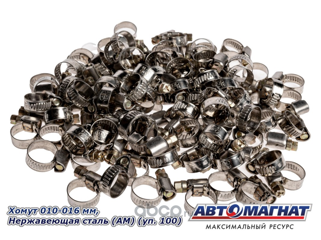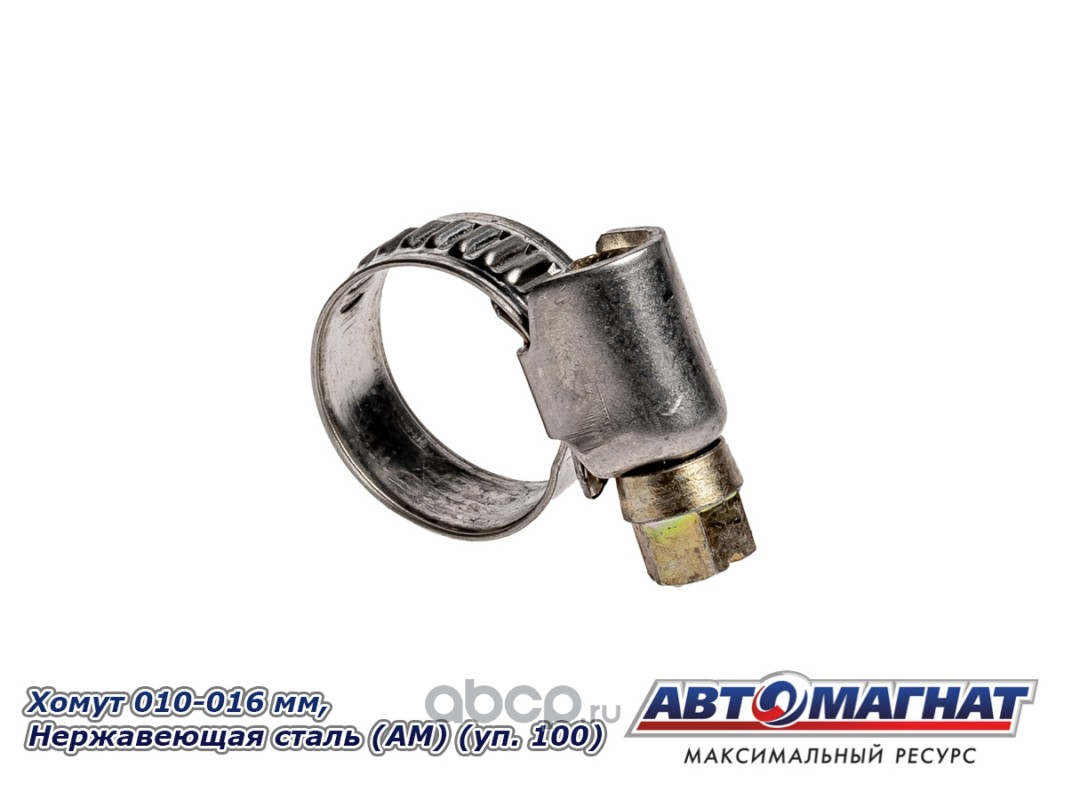 АВТОМАГНАТ AM35024 Хомут ленточный 010-016 мм, ширина 9 мм, W2-Нержавеющая сталь, болтовое крепление "Автомагнат", (уп.100 шт)