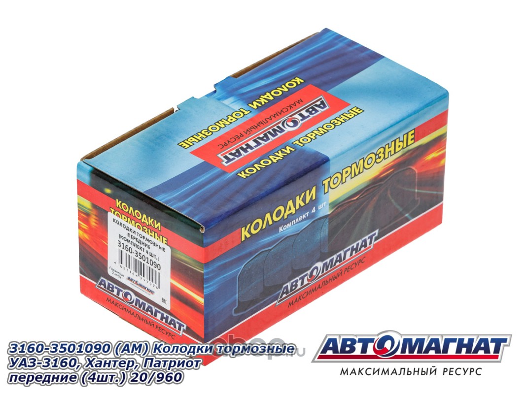 Колодки тормозные УАЗ-3160, Хантер, Патриот передние (4шт)