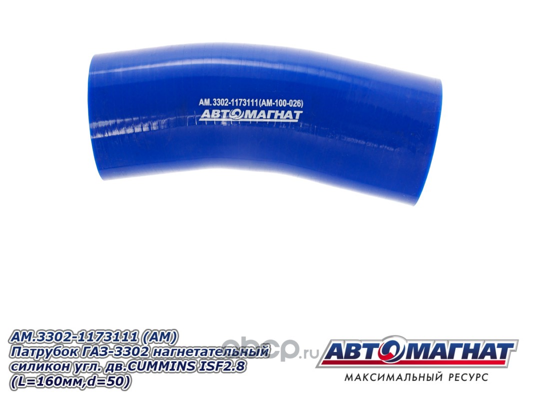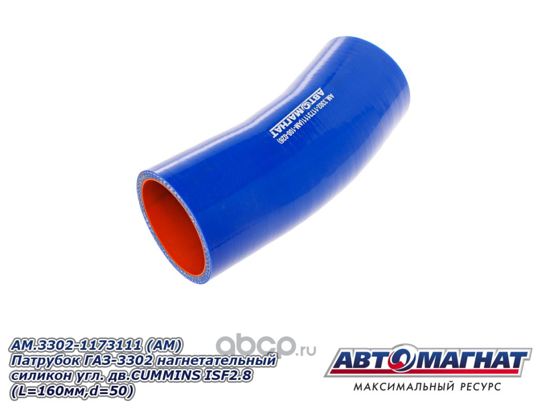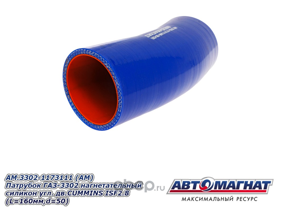 Патрубок ГАЗ-3302 нагнетательный силикон угловой дв.CUMMINS ISF 2.8 (L=160мм, d=50).