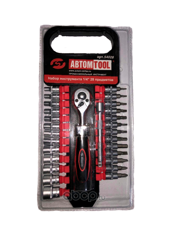 | АВТОМ TOOL | 54028 | Набор инструмента 1/4" 28 предметов, АВТОМ TOOL (с трещёткой+головки 4-14мм+битыТ10-30, FD5; 5,7мм, HEX3;4;5;6мм+удл 100мм) РROFFI, на планке | ||