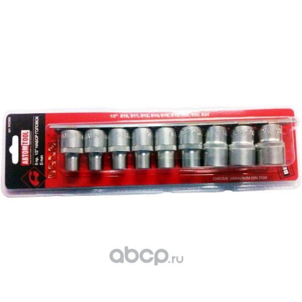 | АВТОМ TOOL | 5423609 | Набор головок (звезд) на планке 1/2" 9 предметов TORX E10-E24, АВТОМTOOL, РROFFI, CrV | ||