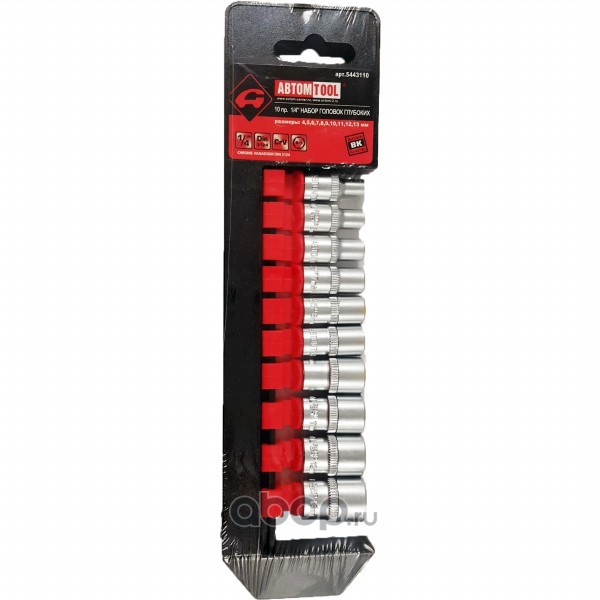 | АВТОМ TOOL | 5443110 | Набор головок 1/4" 10 предметов 4-13мм (на планке) АВТОМ TOOL | ||
