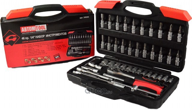 | АВТОМ TOOL | 54046 | Набор инструмента 1/4" 46 предметов с трещёткой+биты АВТОМ TOOL, РROFFI, CrV, пласт кейс | ||