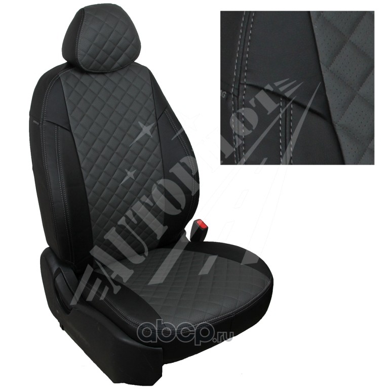 Комплект чехлов для Chevrolet Lacetti / Daewoo Gentra / Ravon Gentra, материал - Ромб, цвет - Черный + Темно-серый