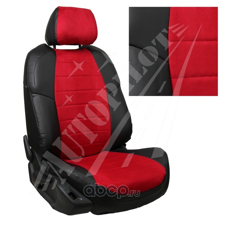 Комплект чехлов для Audi Q3 с 2011г.в., материал - Алькантара, цвет - Черный + Красный