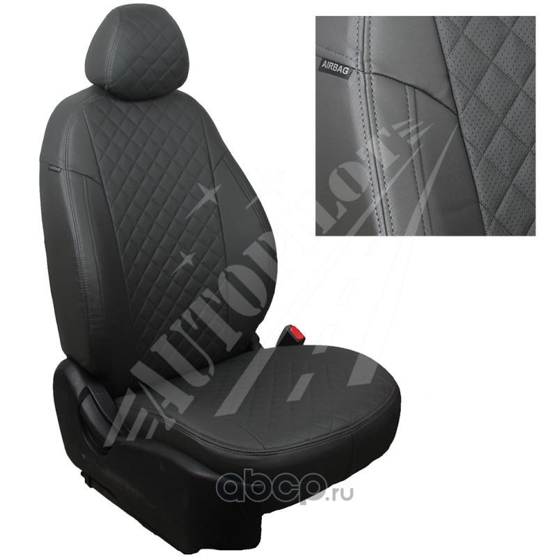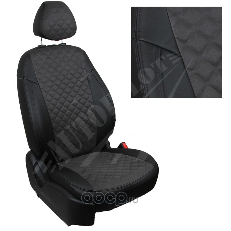 Комплект чехлов для LADA Granta Sd/Hb / Datsun on-Do (сплошная), материал - Ромб, цвет - Серый + Черный