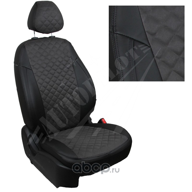 Комплект чехлов для KIA Rio II Hb с 05-11г., материал - Алькантара ромб, цвет - Черный + Темно-серый