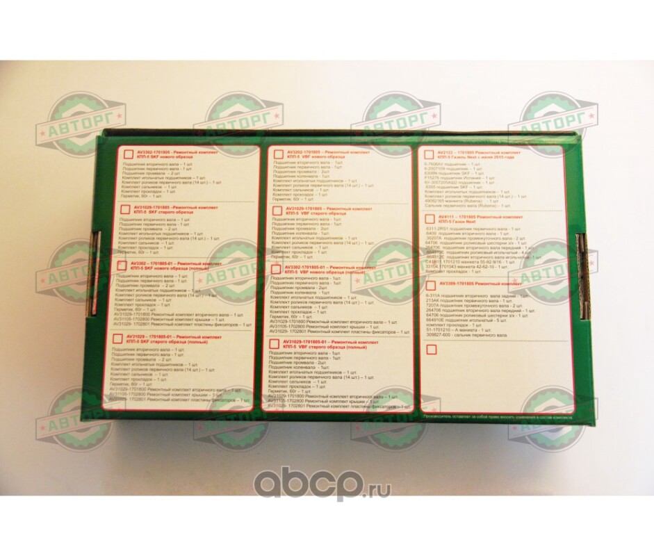 | АВТОРГ | AV3302170180501 | Ремонтный комплект подшипников V КПП нового образца (полный) | ||