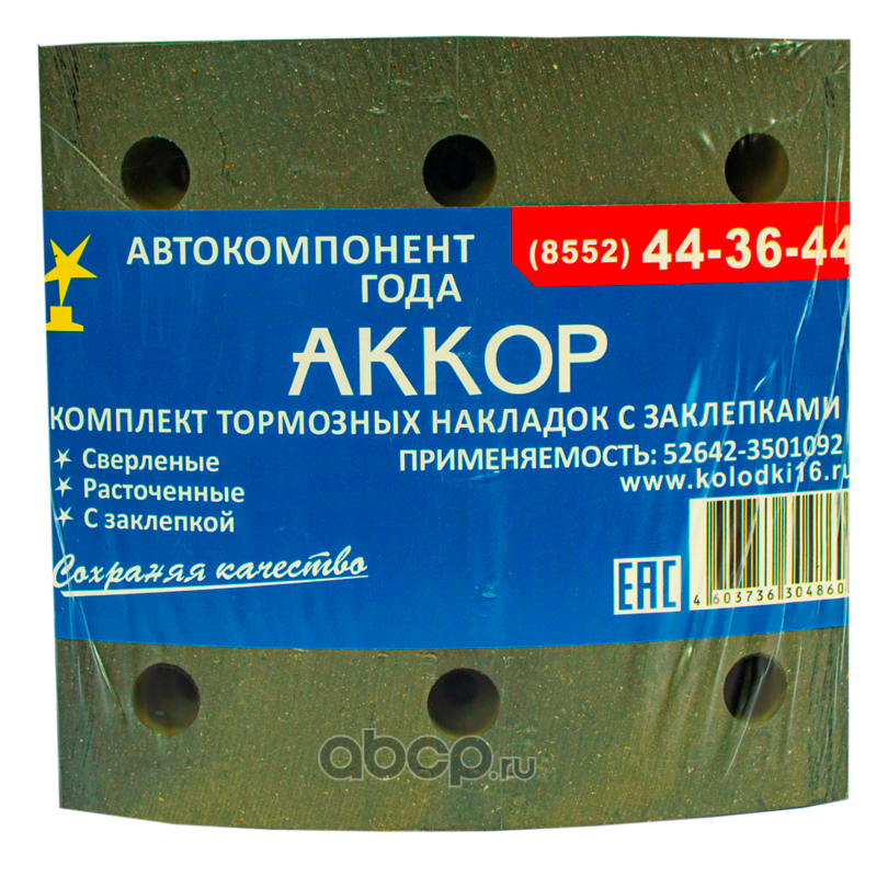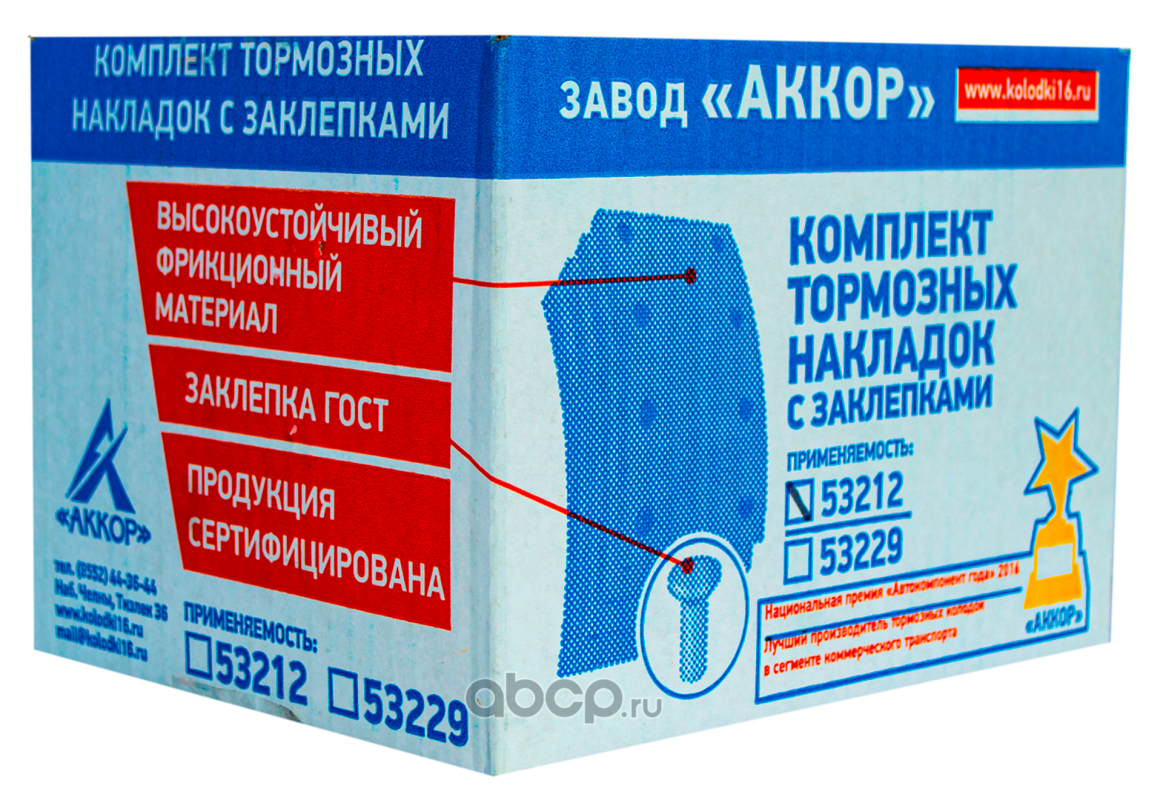 «АККОР» – российский бренд, под маркой которого выпускаются тормозные колодки для отечественных и зарубежных грузовых автомобилей, таких как КамАЗ, МАЗ, Урал, НефАЗ, ЗИЛ, Volvo, Scania, Iveco, а также для полуприцепов ЧМЗАП и осей BPW, MADARA, L1, RABA, SHAANXI. Кроме того, компания производит тормозные колодки для коммерческих автомобилей ГАЗ, УАЗ, HYUNDAI, ISUZU, FUSO, JAC.