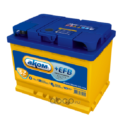 | АКОМ | 6СТ620PLUSEFB | Батарея аккумуляторная 62А/ч 580А обратная полярн. стандартные (Европа) клеммы | ||