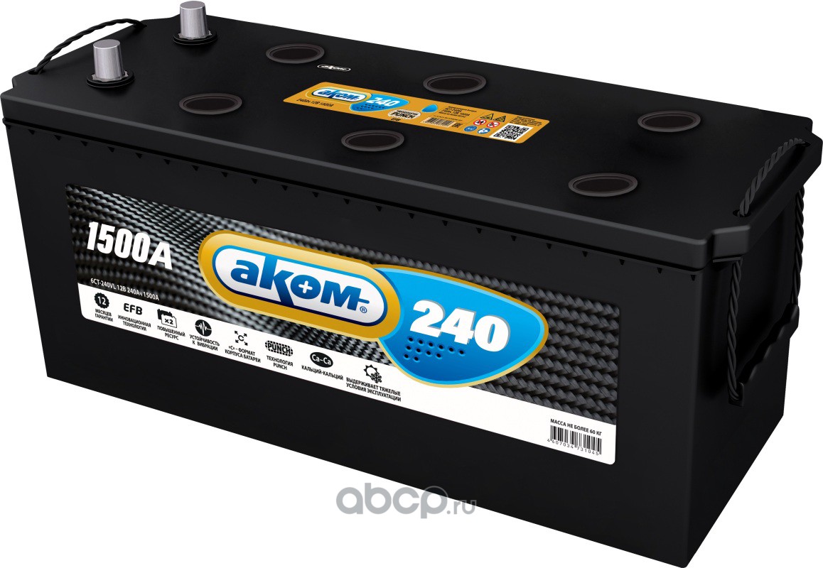 АКОМ | 6СТ240 | Батарея аккумуляторная 240А/ч 1500А прямая полярн. стандартные (Европа) клеммы | |