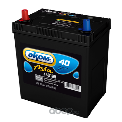 | АКОМ | 46B19R | Батарея аккумуляторная 40А/ч 330А прямая полярн. стандартные (Европа) клеммы | ||