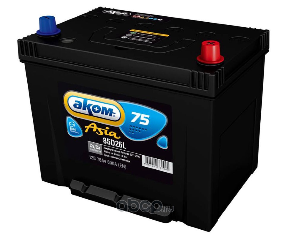 | АКОМ | D26L | Батарея аккумуляторная 75А/ч 630А обратная полярн. выносные (Азия) клеммы | ||