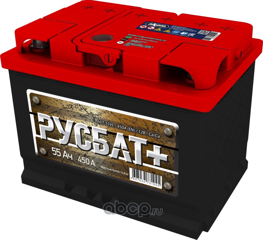| АКОМ | 4607034731267 | Батарея аккумуляторная 55А/ч 450А прямая полярн. стандартные (Европа) клеммы | ||