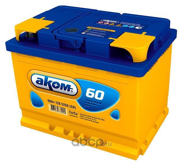 | АКОМ | 6СТ60L1 | Батарея аккумуляторная 60А/ч 520А прямая полярн. стандартные (Европа) клеммы | ||