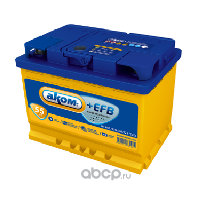 | АКОМ | 6СТ550PLUSEFB | Батарея аккумуляторная 55А/ч 530А обратная полярн. стандартные (Европа) клеммы | ||