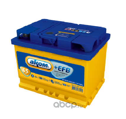 АКОМ | 015065101 | Батарея аккумуляторная 65А/ч 520А обратная полярн. стандартные (Европа) клеммы |