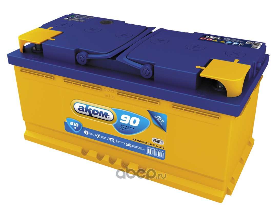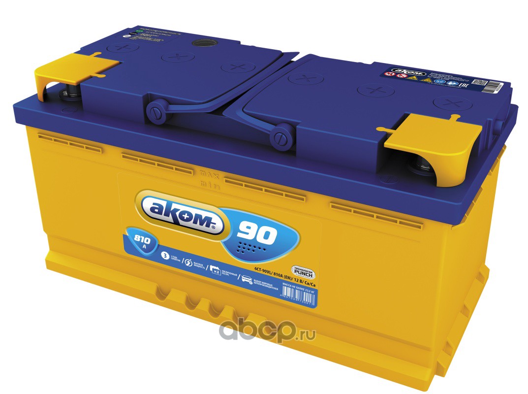 | АКОМ | 4607034730062 | Батарея аккумуляторная 90А/ч 810А 12В прямая полярн. стандартные (Европа) клеммы | ||