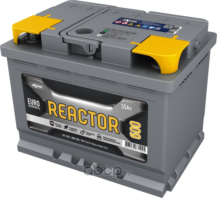 | АКОМ | 4607034730086 | Батарея аккумуляторная 55А/ч 600А обратная полярн. стандартные (Европа) клеммы | ||