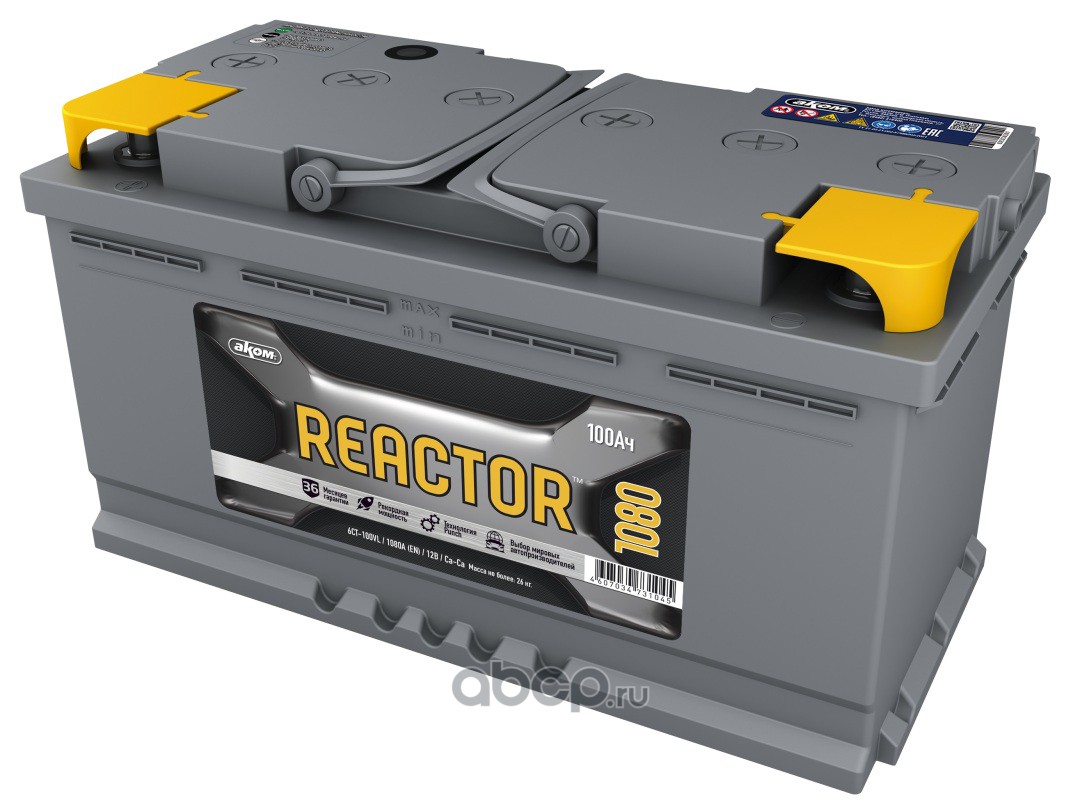 | АКОМ | 4607034730420 | Батарея аккумуляторная 100А/ч 1080А прямая полярн. стандартные (Европа) клеммы | ||