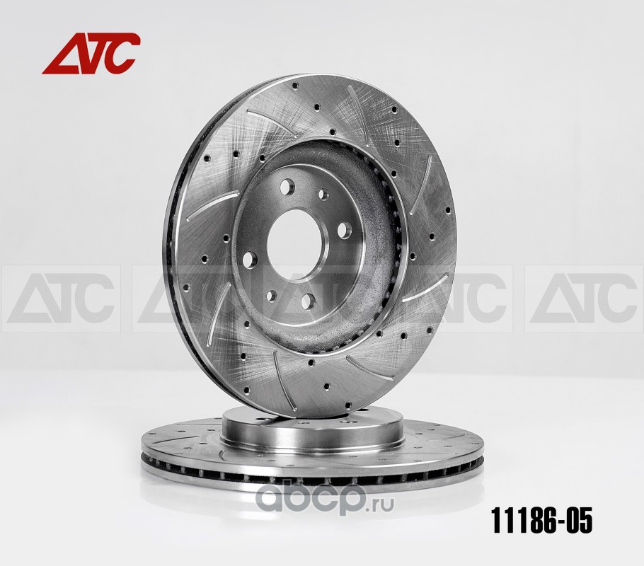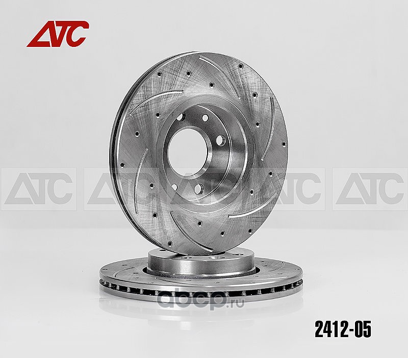 Тормозной диск ""АТС-SPORT""- вентилируемый для а/м Renault, LADA, NISSAN (направленные по движению канавки 6 шт, плюс перфорация 18 отверстий).