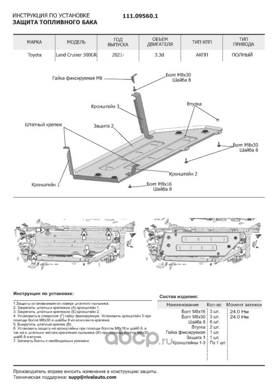 | Автоброня | 111095601 | Защ.топл.бака Toyota LC 300 GR SPORT 21-, st 1.8mm | ||