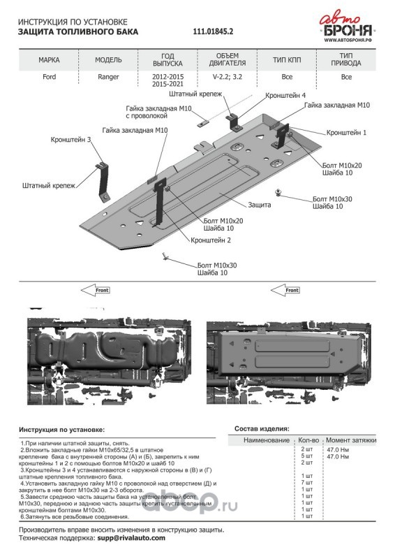 | Автоброня | 111018452 | Защита топливного бака | ||