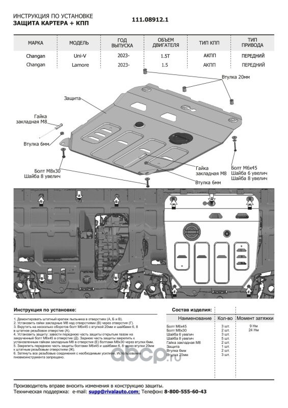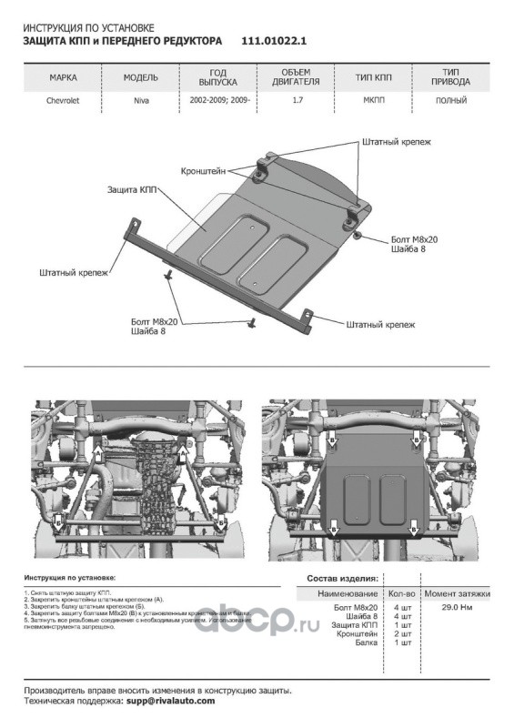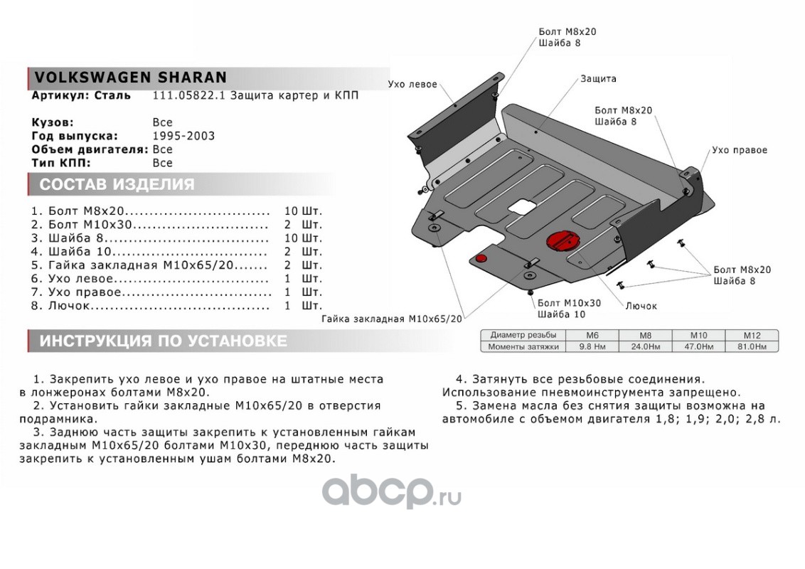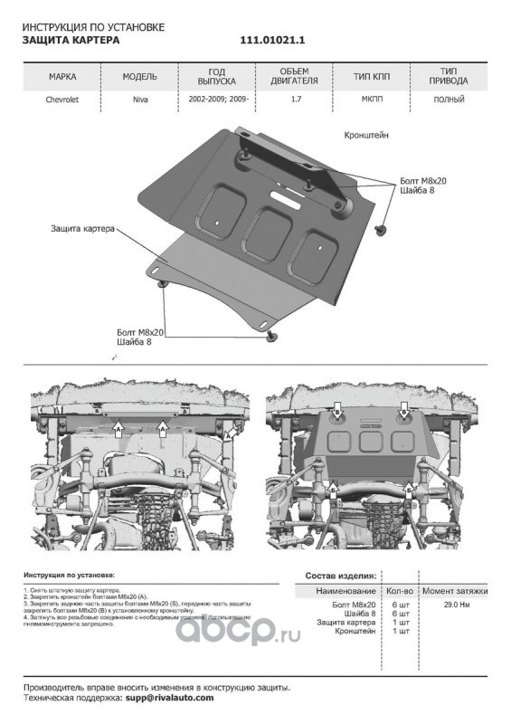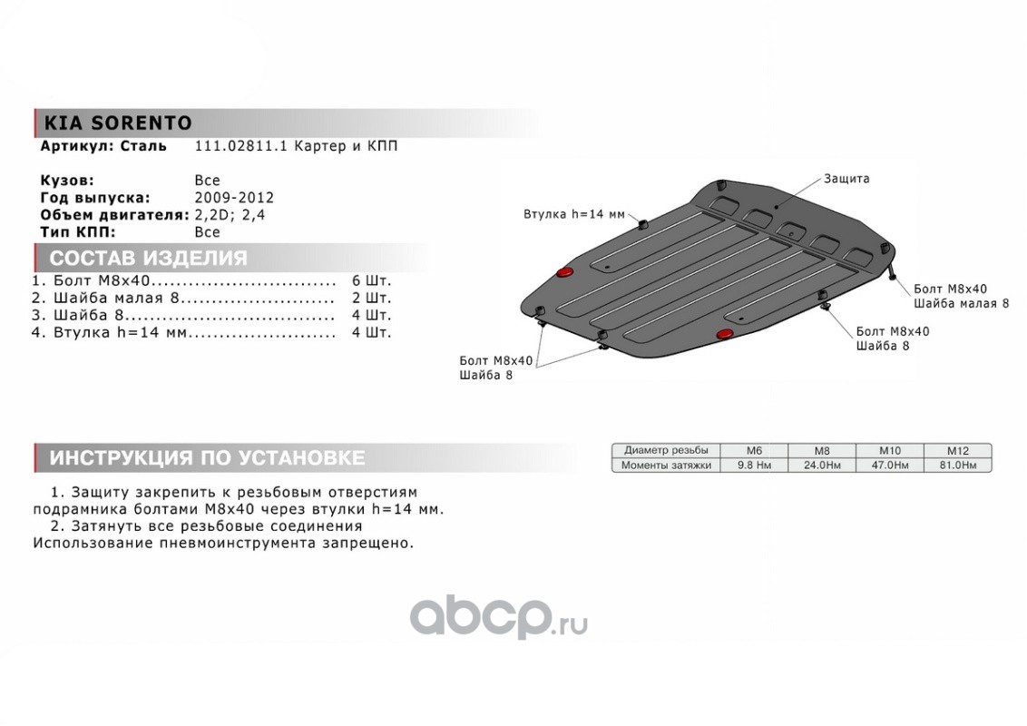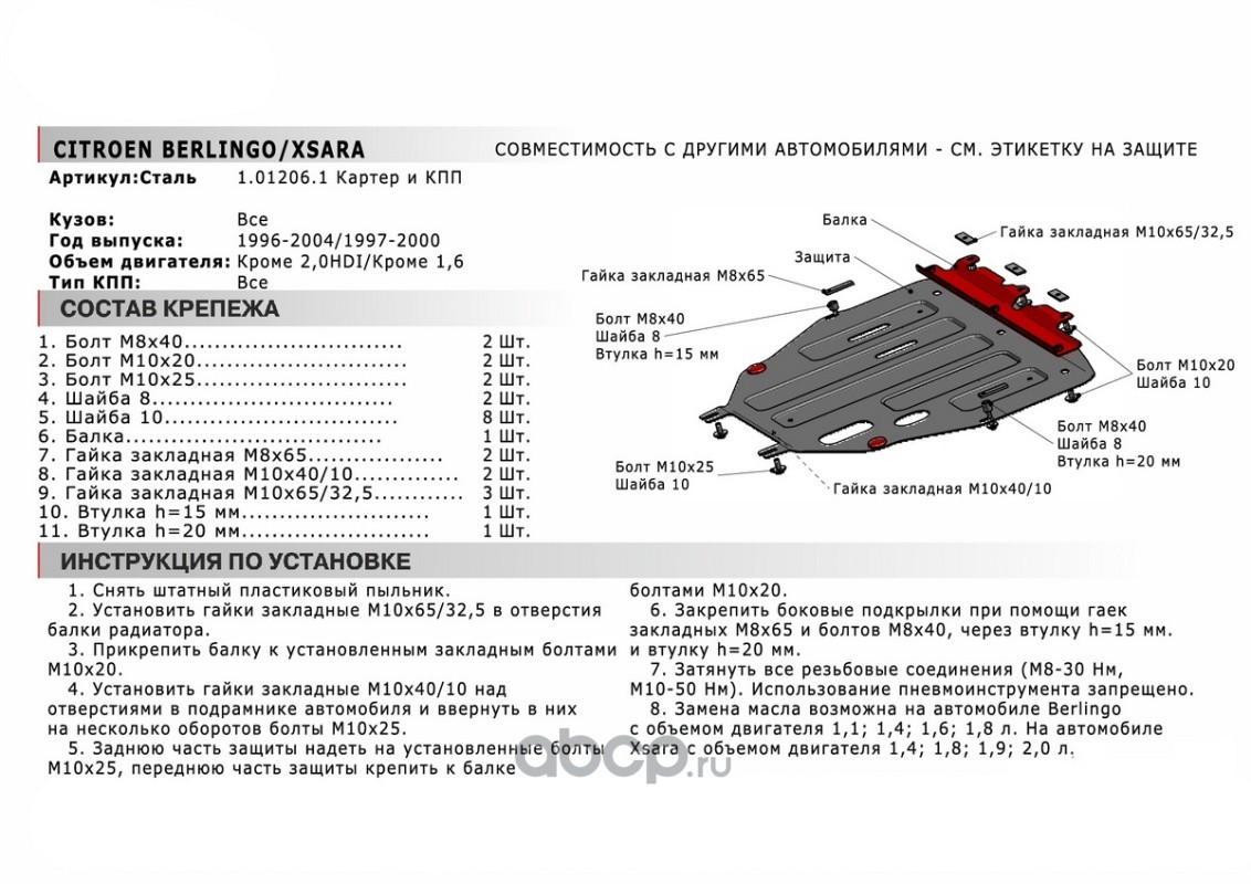 Защита картера и КПП, сталь 1.8 мм, с крепежом, штампованная