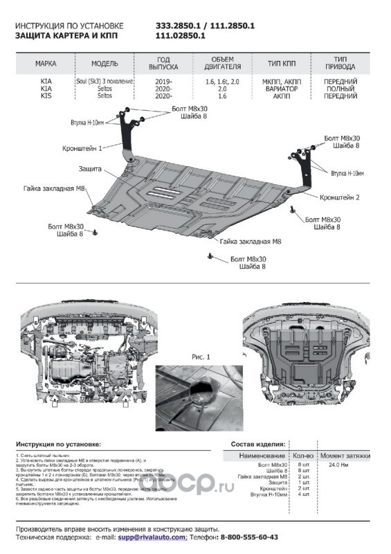 ЗК+КПП Kia Seltos FWD/4WD 20-/Soul 19-, st 1.5mm
