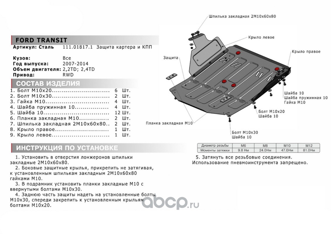 ЗК+КПП Ford Transit VI RWD 2006-2014, st 1.8mm