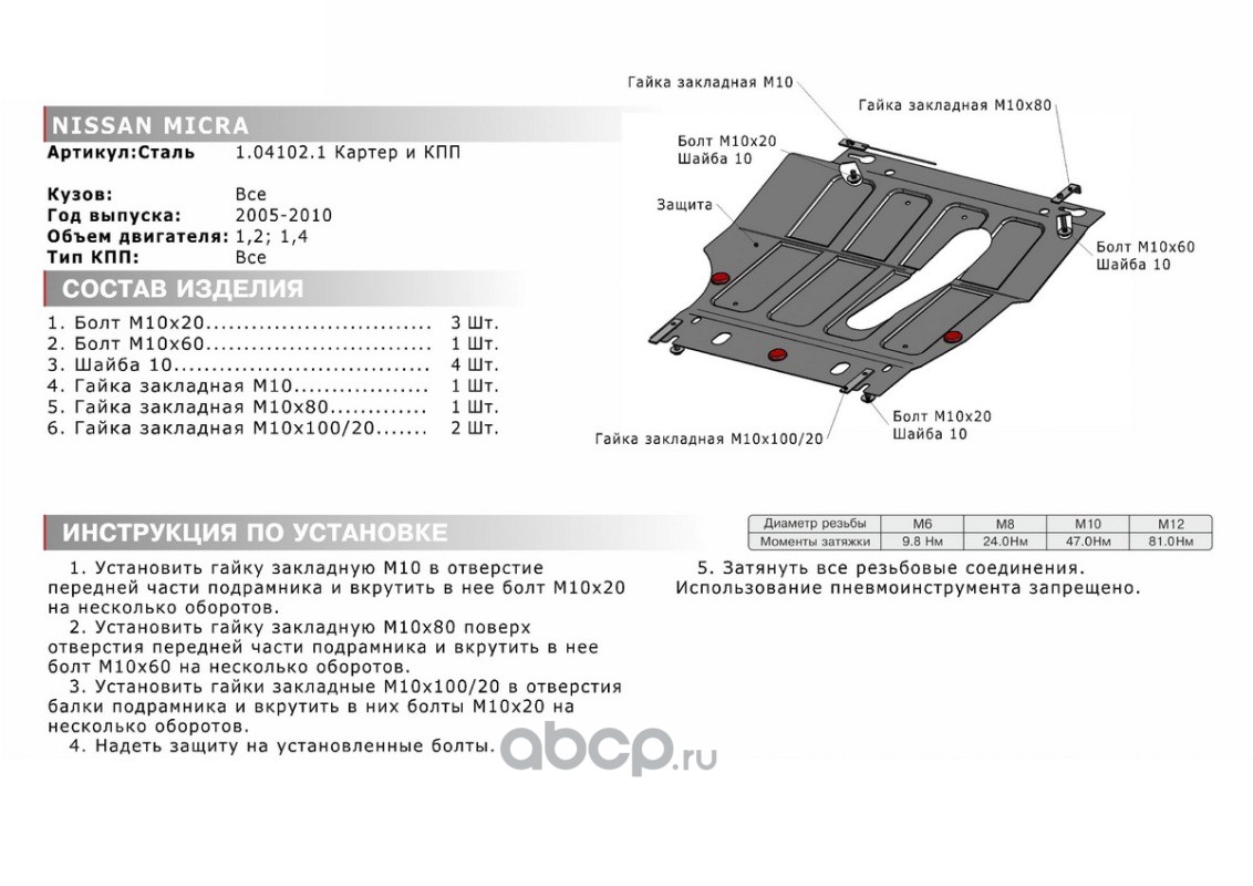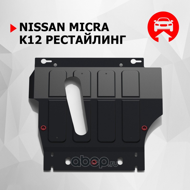 Защита картера и КПП Nissan Micra крепеж в комплекте сталь 1.8 мм черный АвтоБроня