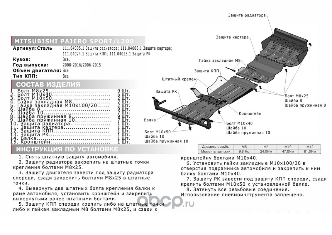 ЗК Mitsubishi L200 06-15/Pajero Sport 08-16